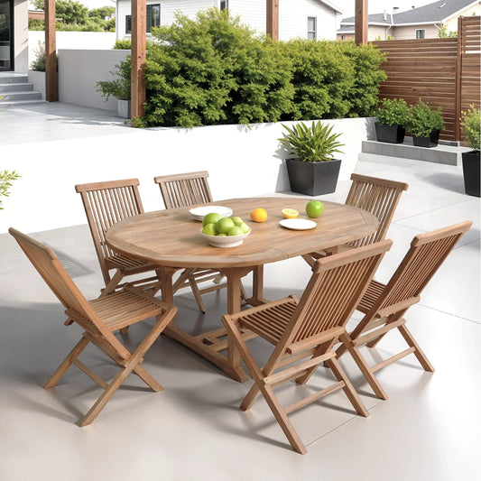 Voir le produitSalon de jardin en teck - table ronde extensible pour 6 personnes