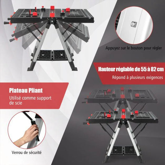 Voir le produitÉtabli Pliable avec Plate-Forme 2 en 1 - 2 Hauteurs Réglables