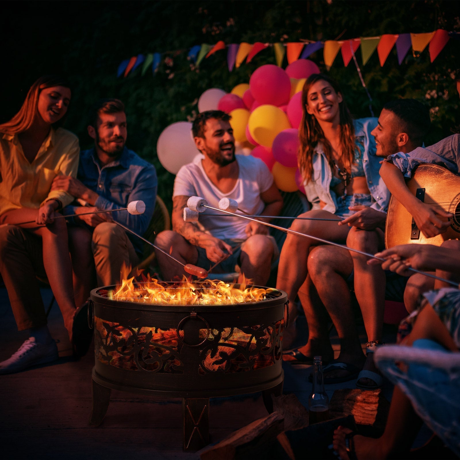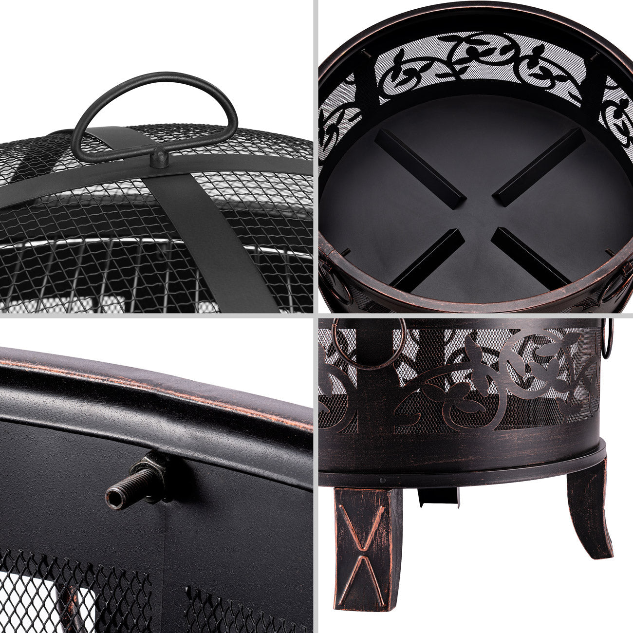 Apportez chaleur et convivialité à vos soirées en plein air avec ce brasero de jardin en acier noir-bronze au diamètre généreux de 66 cm. Alliant robustesse et élégance, sa structure en acier solide et ses reflets bronze donnent une touche d'authenticité à votre espace extérieur, tandis que sa grande capacité vous permet de profiter de feux durables et accueillants. Pensé pour votre sécurité et votre confort, il est équipé d'une grille anti-étincelles avec poignée, d'un tisonnier et de quatre anneaux latéraux facilitant son transport. Stable grâce à ses pieds solides et protégé par une housse PVC fournie, ce brasero allie esthétisme et fonctionnalité pour sublimer vos moments de partage au jardin.