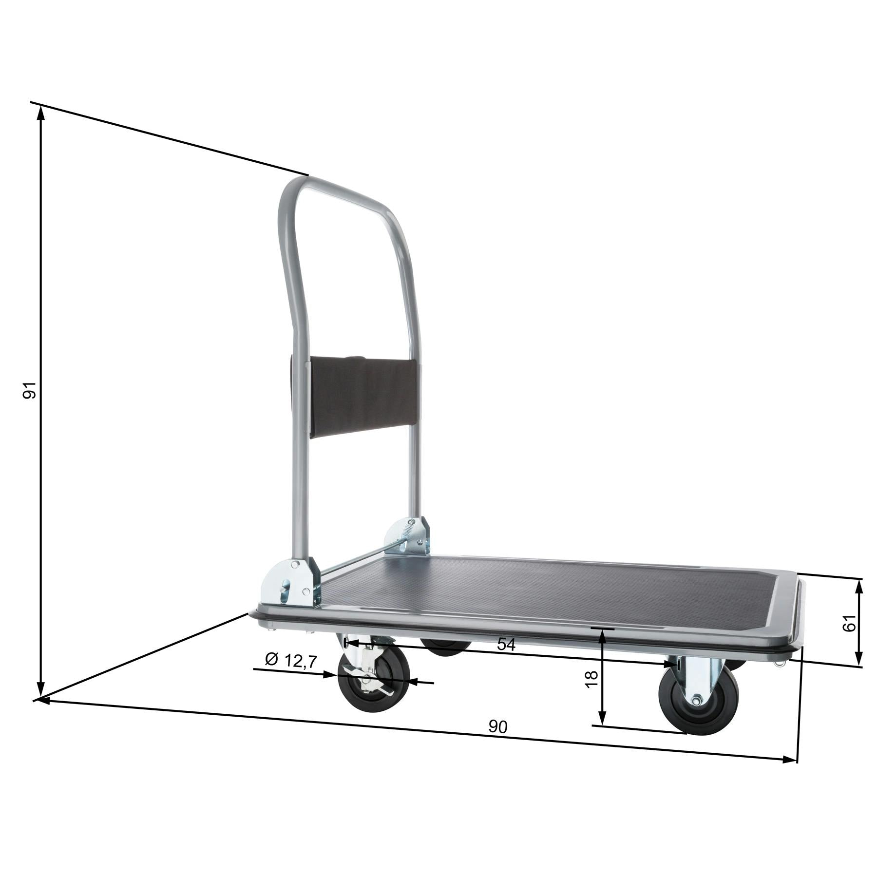 • Plateforme : Pliable avec revêtement antidérapant en caoutchouc