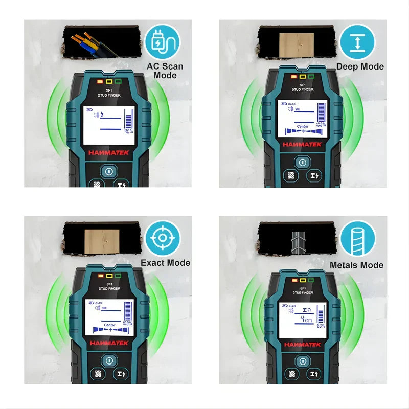 • 🎯 Détection précise : Localise avec précision les clous, vis, barres en acier, poutres en bois et câbles AC.