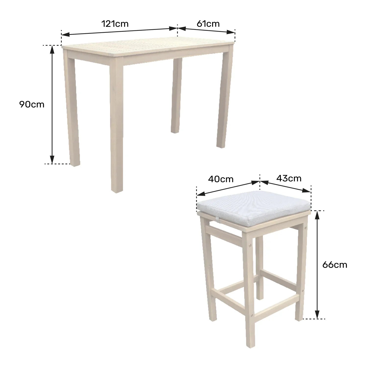 • Composition du set : 1 table haute + 4 tabourets assortis
