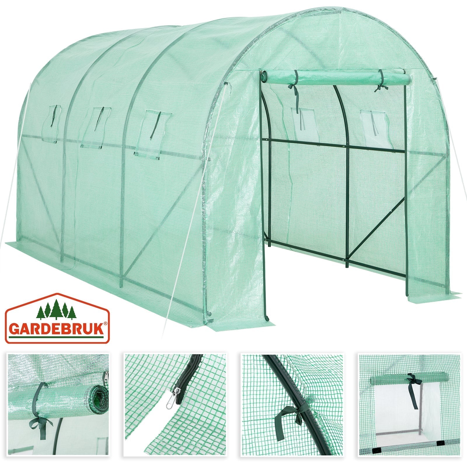 Le tunnel de jardin Gardebruk® (350x200x200 cm) offre une solution pratique et efficace pour protéger vos semis, végétaux et légumes tout au long de l'année. Son cadre métallique robuste associé à une housse en polyéthylène résistante aux intempéries crée un environnement idéal, assurant une excellente luminosité tout en maintenant chaleur et humidité pour une croissance optimale. Facile à monter grâce à son système de vissage rapide, ce tunnel dispose de portes et fenêtres zippées avec moustiquaires intégrées pour une ventilation ajustable et une protection contre les nuisibles. Compact et stable, il s’adapte parfaitement aux jardiniers amateurs et urbains soucieux de cultiver sainement dans un espace limité, alliant simplicité d’utilisation et durabilité pour accompagner toutes vos cultures.