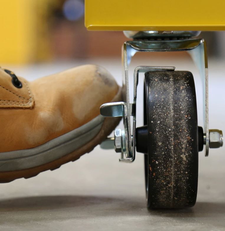 • Roues : 4 roues 127 x 50 mm (2 fixes, 2 pivotantes avec freins)