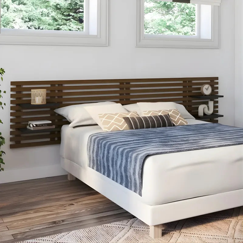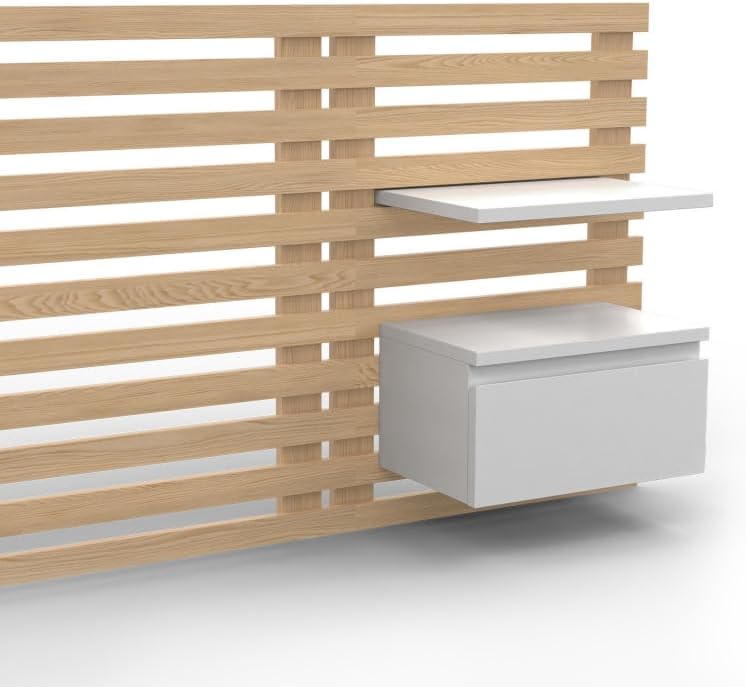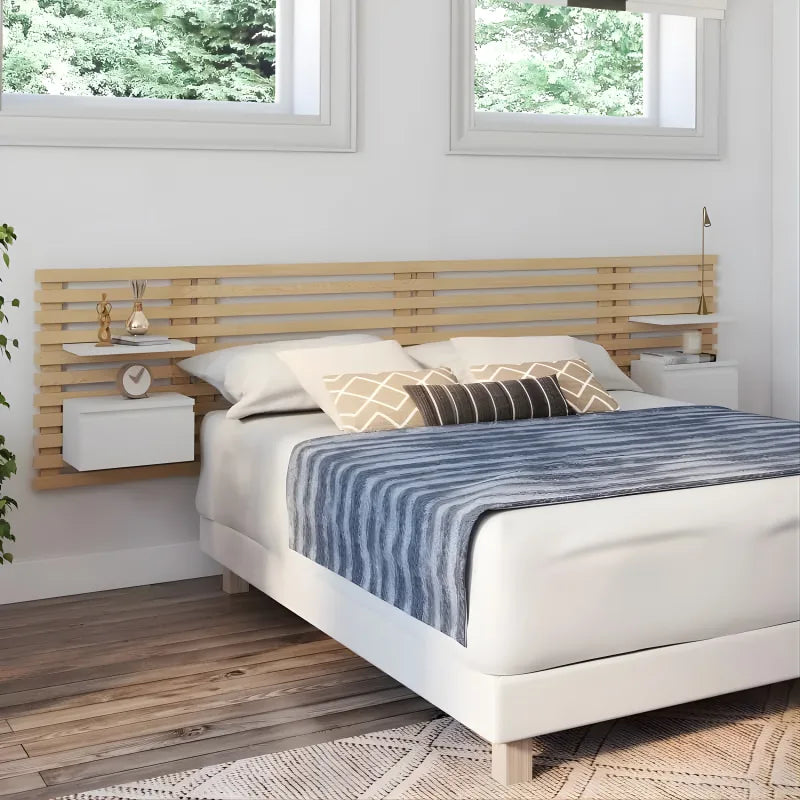 Transformez votre chambre en un havre de paix avec la Tête de Lit Suspendue en Lattes - 240 cm. Ce chef-d'œuvre suspendu allie élégance et fonctionnalité, grâce à ses tons boisés naturels et ses accents blancs épurés qui instaurent une ambiance apaisante.